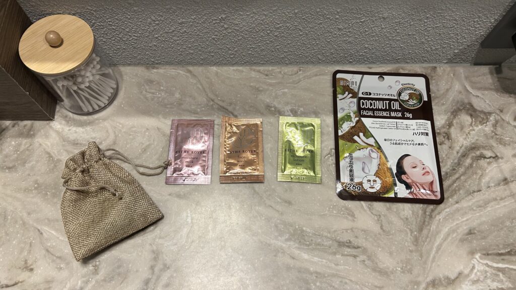 クレンジング・洗顔・化粧水・乳液は入口で受け取れるので持参不要。