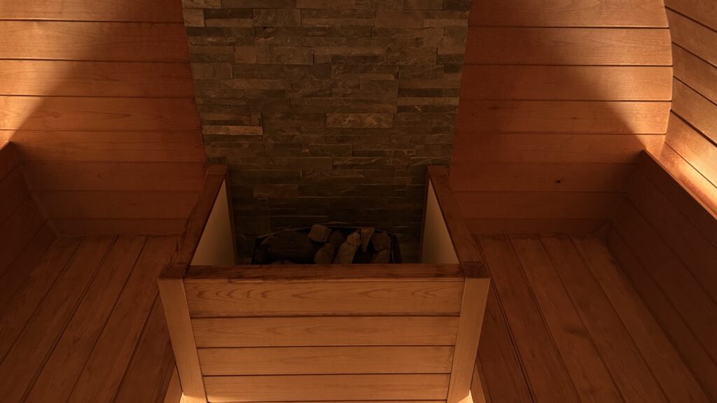 ストーン量も十分で、ロウリュ時の蒸気が一気に広がります。