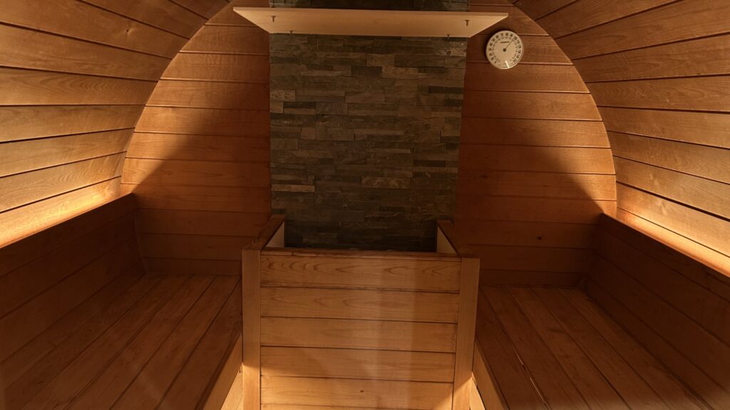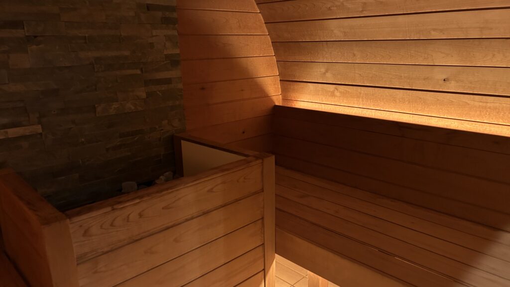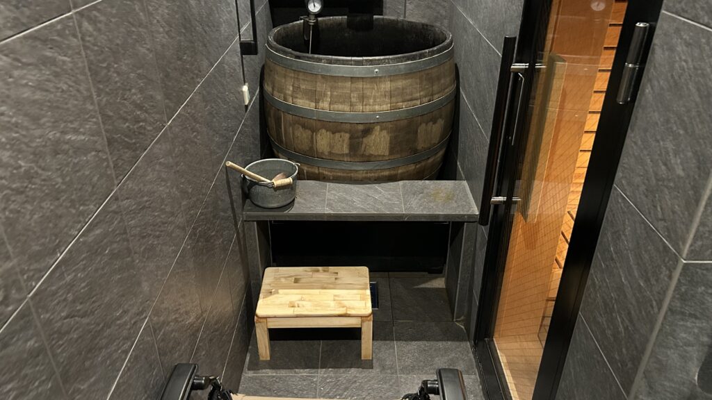 丸みのあるサウナ室は、ロウリュ時に蒸気がやさしく循環し、体の芯までしっかり温まる心地よい熱感が特徴。サウナ→水風呂→ととのいまでの導線もスムーズで、個室サウナの魅力を存分に味わえます。