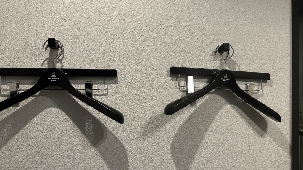 着替え用のハンガーも用意されていて、服を清潔に保てるのが嬉しいところ。