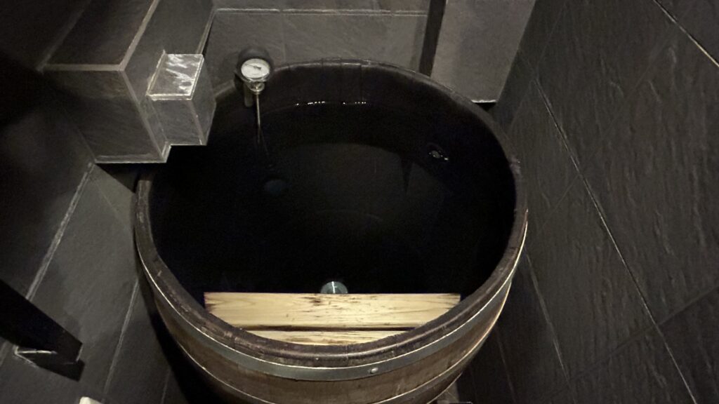 水が溜まるにつれて、存在感が一気に増す樽水風呂。15分ほどでしっかり溜まり、サウナに入っている間にちょうど良い状態になります。