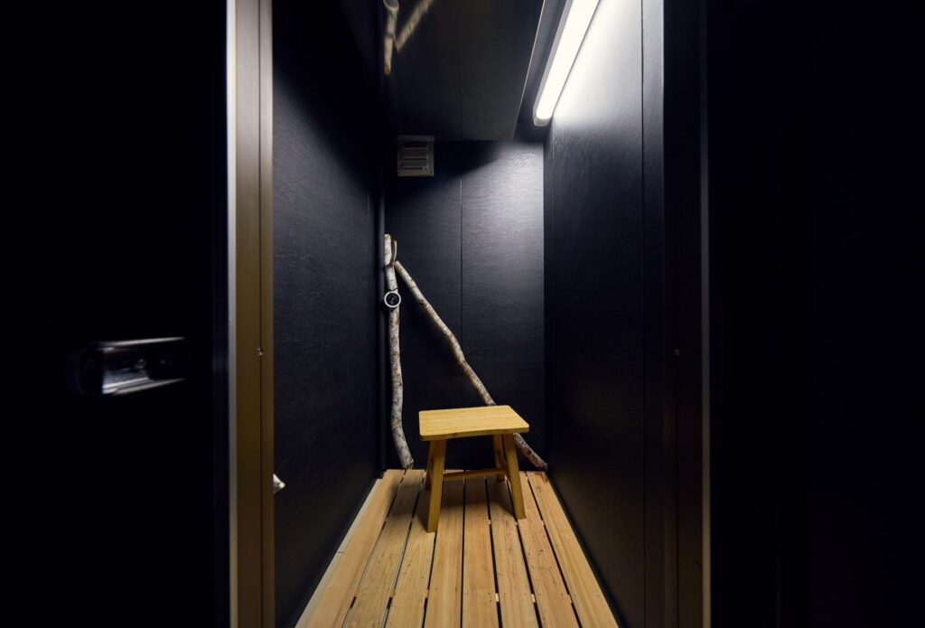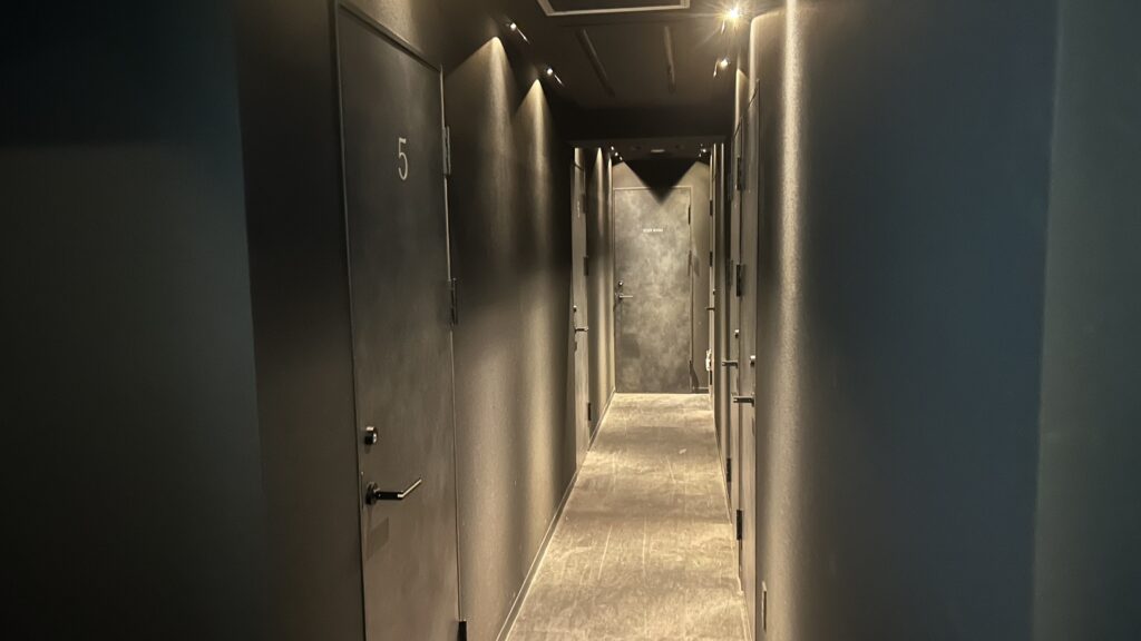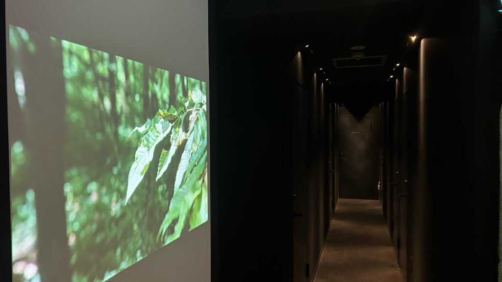 このトンネルを抜けると、いよいよ個室サウナが並ぶサウナエリアへ。