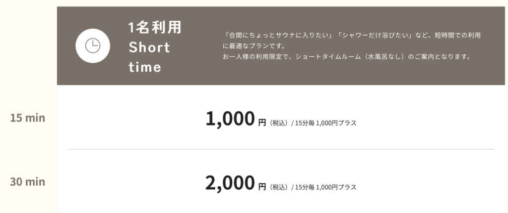 スタンダードサウナ × シャワーのみ(Short time room/全1部屋)