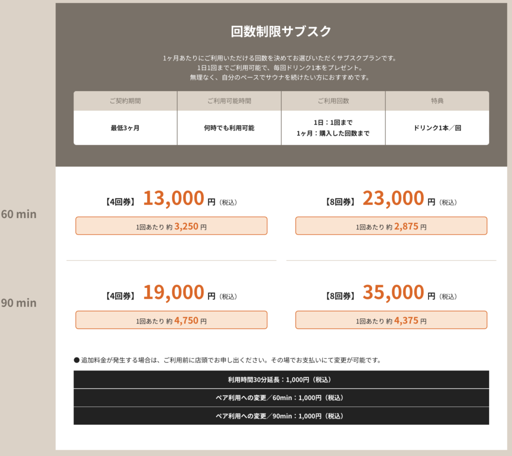 COCO VILLA sauna 麻布十番の魅力は、完全個室サウナでありながら、サブスクや回数利用を使うことで、1回あたりの料金をぐっと抑えられる点。