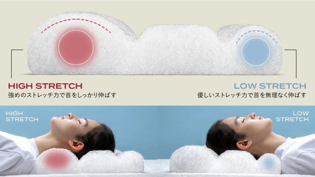 反発の異なる2面を使い分けられる設計で、その日の首のコンディションに合わせて調整できます。