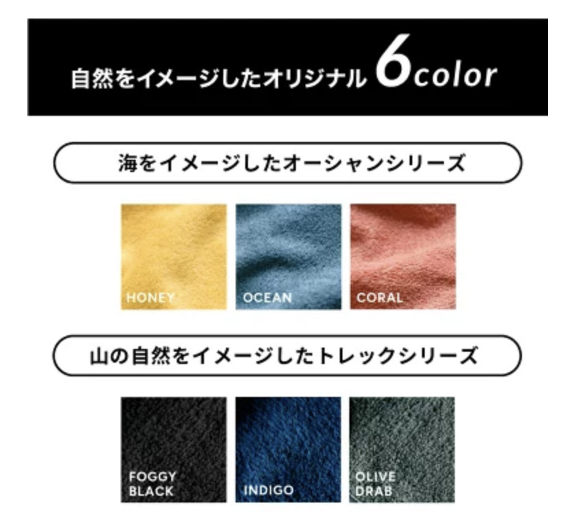 吸水・速乾性に優れ、軽量なマイクロファイバー生地を採用。アイボリー、グレー、ブラックと3色展開。ギフトボックスやメッセージカードのサービスも充実していてプレゼントにも最適。公式サイトのみの取り扱いだから人とも被らないのも◎。