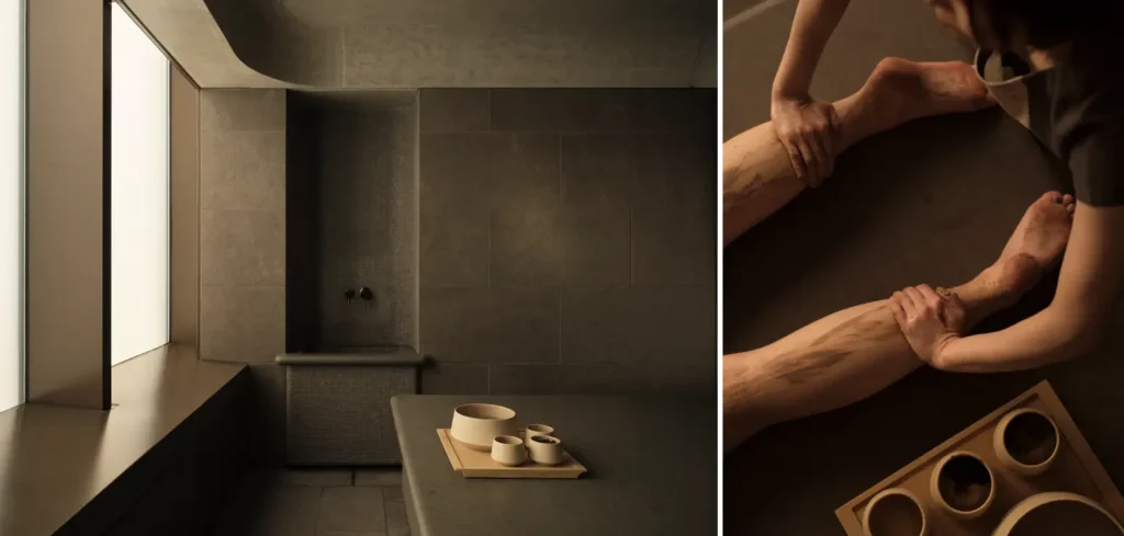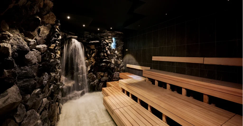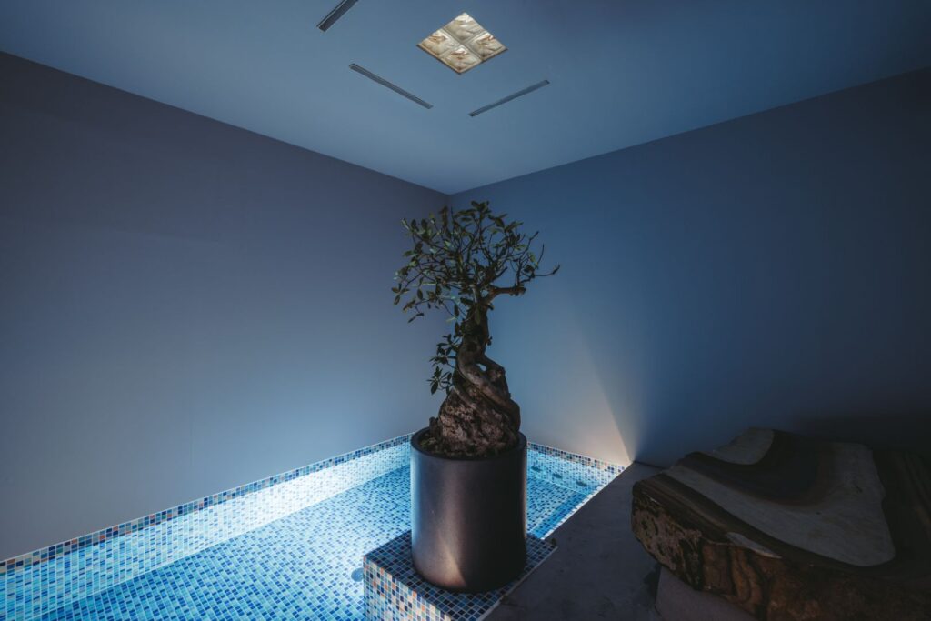 約10〜12℃の冷水風呂は広く清冽で、プールサイドのチェアでのクールダウンも優雅。さらにプライベートサウナルームでは、専属セラピストによる施術付きの“個のととのい”が叶います。