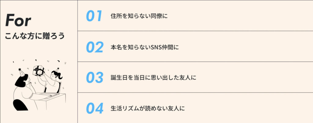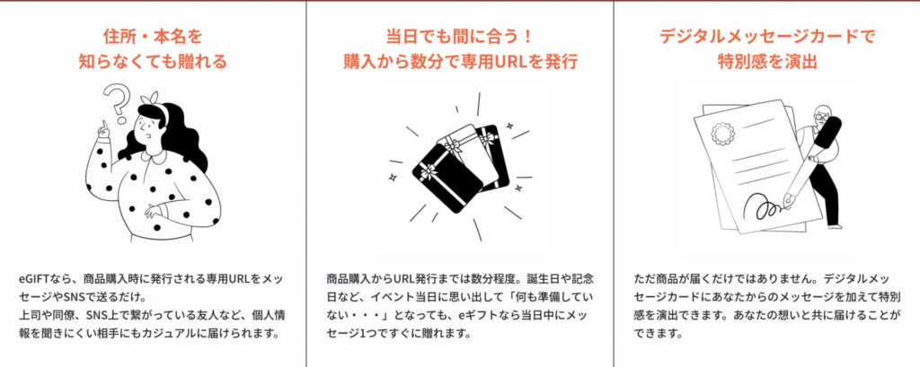 ABiLはe-giftにも対応しているので住所を知らない相手や、SNSの友人などに気軽に贈ることができます。
