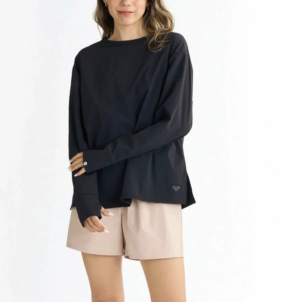 トップスはロンT感覚の程よいゆとりがあり、身体のラインを拾いにくい仕様。