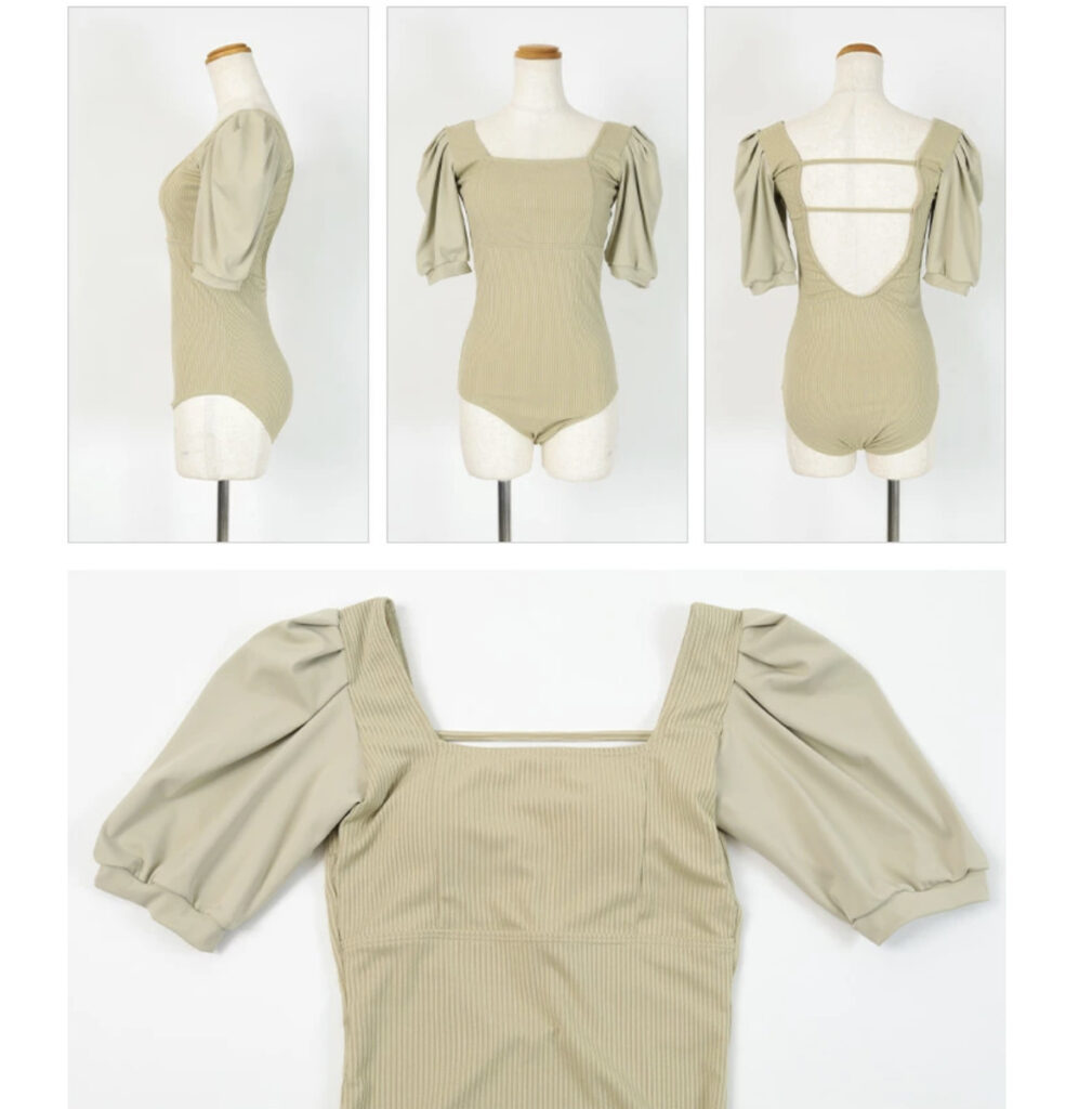 ボディ部分は縦ラインが強調されるリブ素材で、自然なくびれを作りながらスタイルアップ効果も期待できます。