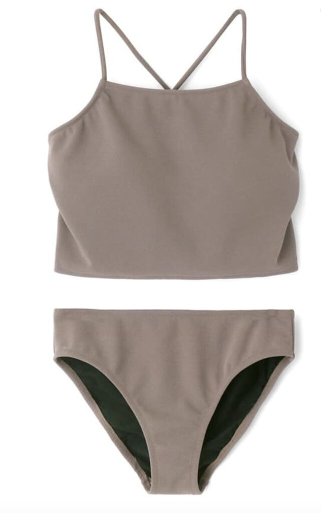 2. 露出控えめなデザインで初心者も快適(タンキニ&ラッシュガード構成)