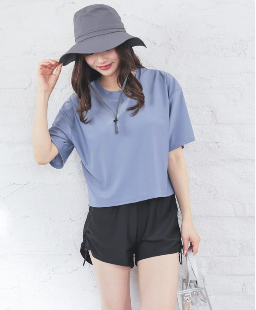 UV対策と体型カバーを両立。露出を抑えつつ、きちんと動ける一着を探している人に向いたアイテムです。