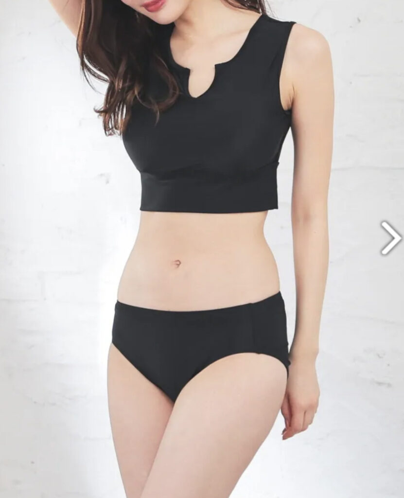 2.インナーのビキニブラはパッド付き・ノンワイヤー仕様で、ストレスが最小限