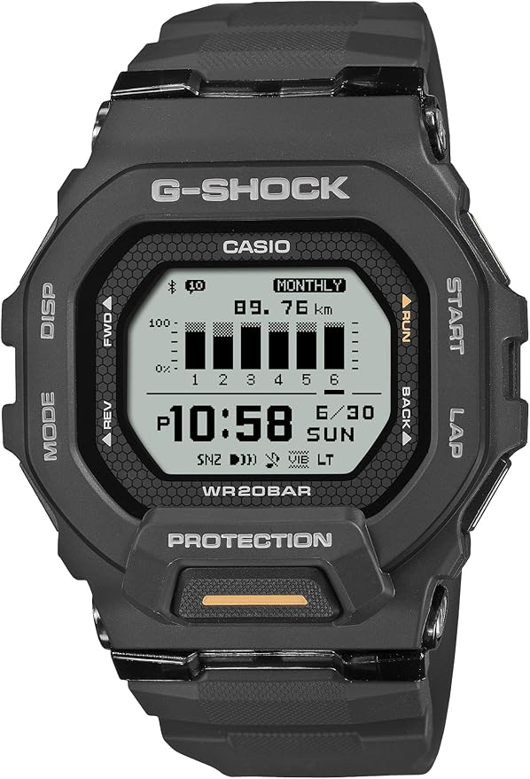 G-SHOCK G-SQUAD GBD-200-1A1JFは、G-SHOCKならではの耐衝撃構造と20気圧防水を備えた、スポーツ向けデジタルウォッチ。