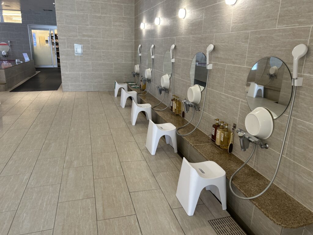 洗い場にはシャンプー、コンディショナー、ボディソープがしっかり完備されており、手ぶら利用でも不自由なし。掃除が行き届いていて、気持ちよく使えるのも好印象でした。