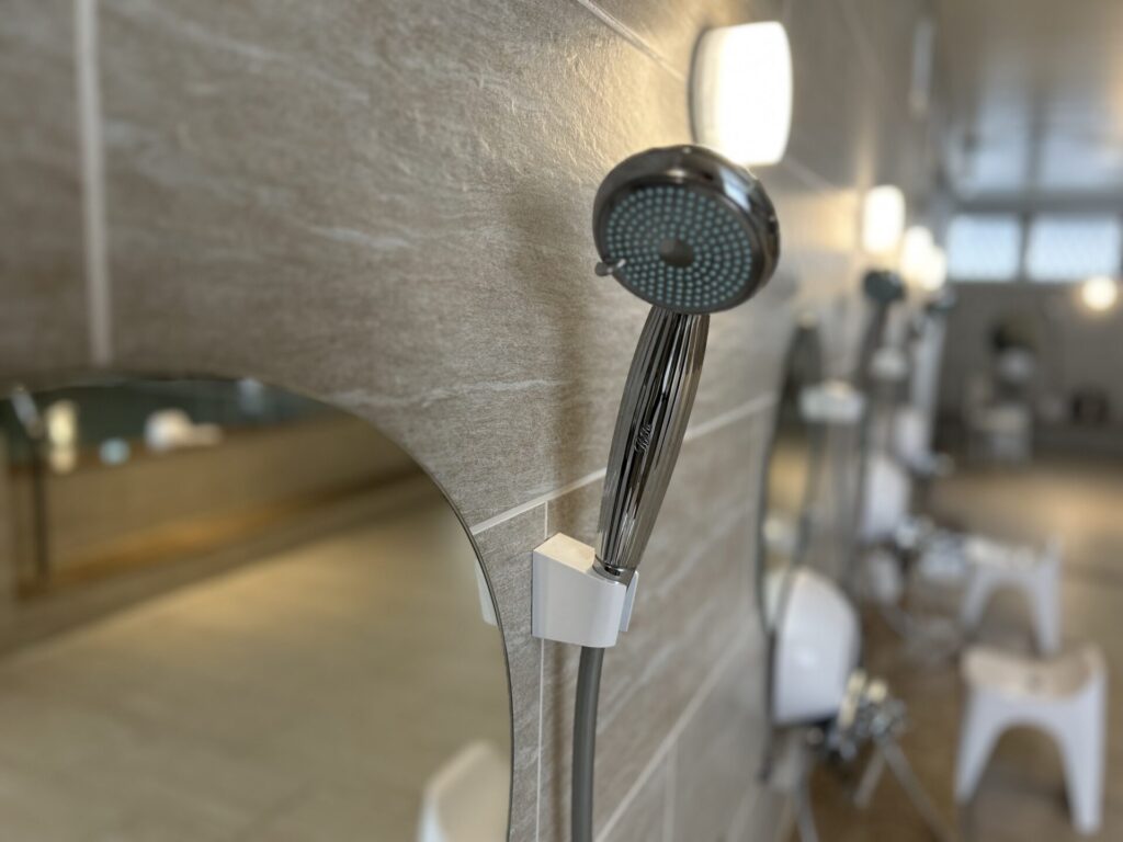 各ブースには人気ブランドReFaのシャワーヘッドを完備。肌あたりがやわらかく、美容を意識した女性にもうれしい設備です。