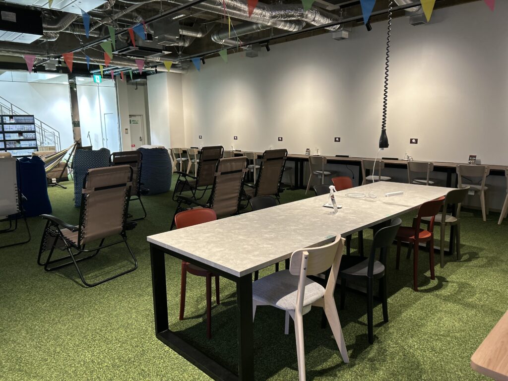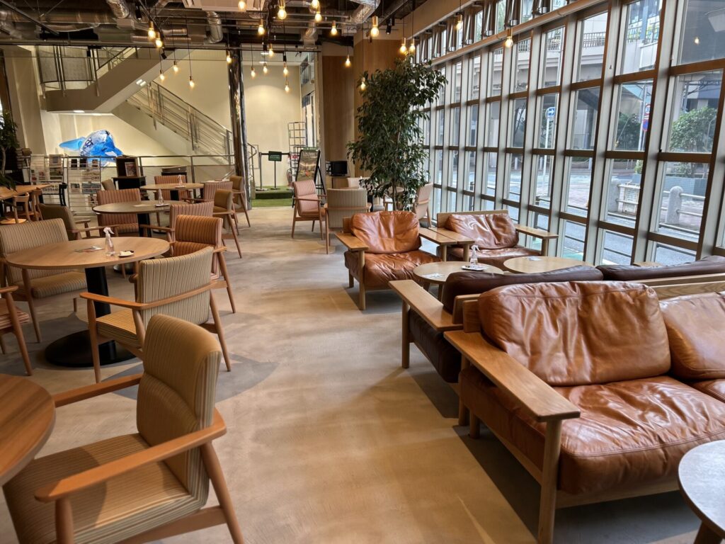 広々としたテーブル席や、電源付きのデスクも完備。Wi-Fi環境も整っているので、仕事や勉強にもぴったり。会話やオンライン会議も可能なエリアがあるため、ビジネス利用にも向いています。