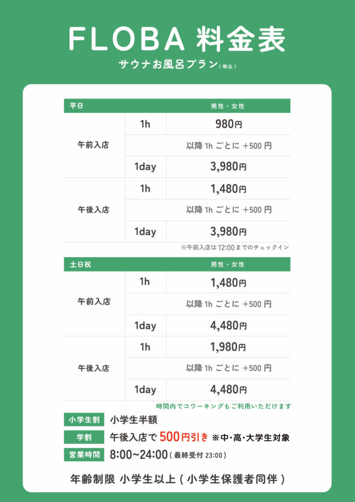 そこで今回は、実際にFLOBAを体験。施設協力のもと写真も撮影しているので、リアルな雰囲気をしっかりお伝えします。サウナ室や水風呂はもちろん、お風呂や内気浴まで徹底解説。